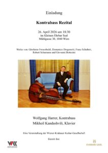 W. A. Mozart – aus der Serenade KV 525 „Eine kleine Nachtmusik“, erster Satz J. S. Bach – Vortrag über und Kanons aus dem „Musikalischen Opfer“ BWV 1079 Domenico Dragonetti – Walzer Nummer elf aus den 12 Walzern für Kontrabass solo Josef Lanner – Walzer „Die Werber“